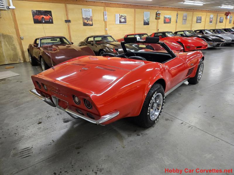 1971 Red Corvette Convertible Stingray Automatic For Sale For more information visit: https://www.hobbycarcorvettes.net/corvette/1971-red-corvette-stingray-automatic-for-sale/ CASH PRICE: $ 37000 Transmission: Automatic Engine: 350 Mileage: 5,119 miles on the dash Details This Corvette retains its original, numbers-matching 350/270 HP engine, automatic transmission, 5,119 miles on the dash (title is exempt for mileage). The black interior complements the red exterior, and the car retains many original features, such as the air cleaner, valve covers, and ignition shielding. It also comes equipped with power steering, power brakes, a white convertible top, rally wheels, dual exhaust, A/C and an AM/FM Delco radio. We sold this corvette to the last owners in 1991 as a Christmas present for his daughter. We changed the oil and filter, transmission fluid and filter, rear end grease and additive, and checked and lubed the chassis. We replaced the left front brake caliper, brake hoses, selector seal, upper control arm bushings, upper ball joints, tongue bushing, leaf spring rubbers, thermostat, thermostat housing, radiator cap, master cylinder, brake rotors, fan clutch, and much more. This Corvette runs and drives really well, delivering plenty of power from its original engine.