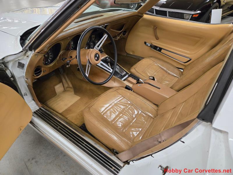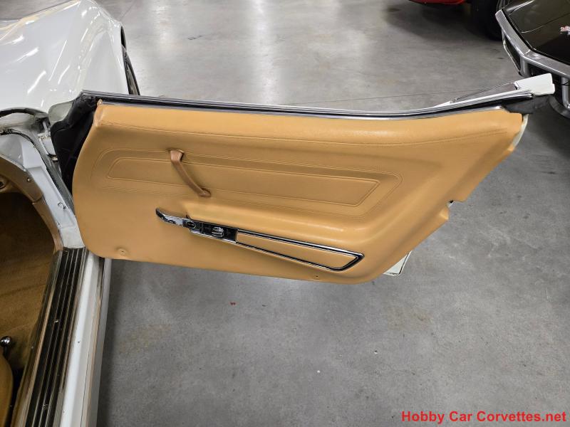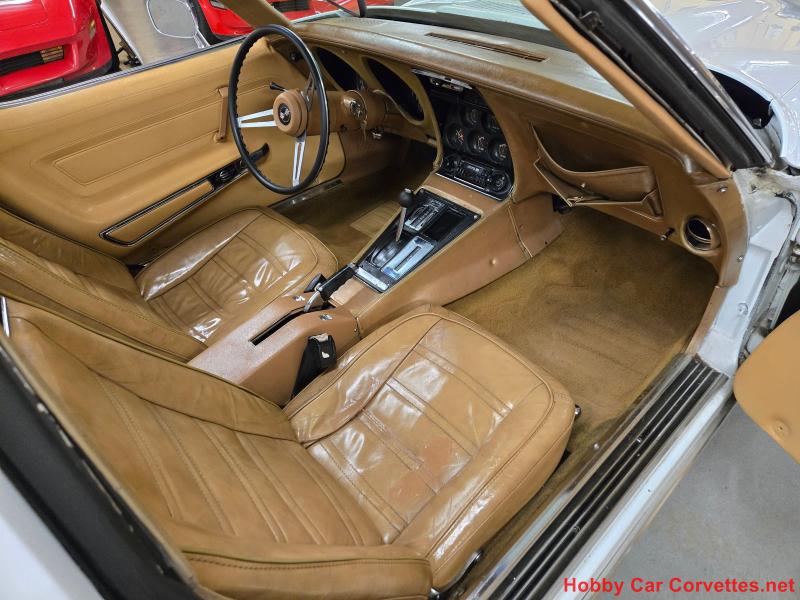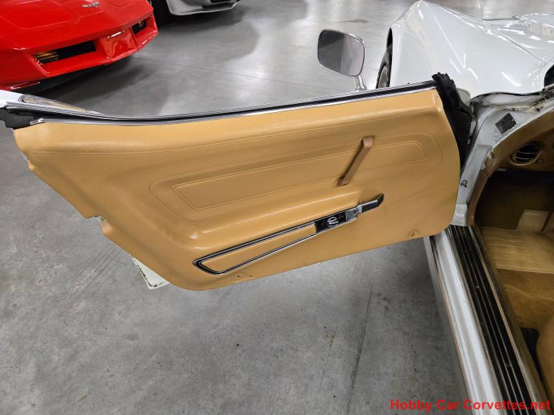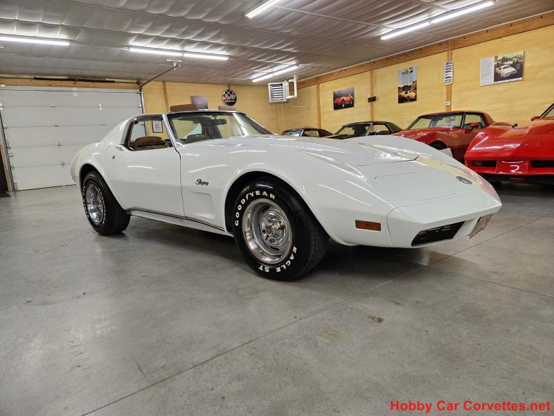 1974 White C3 Corvette For Sale For more information visit: https://www.hobbycarcorvettes.net/corvette/1974-white-c3-corvette-for-sale/ CASH PRICE: $ 20000 Transmission: Automatic Engine: 350 Mileage: 81,983 miles on dash Details 350 engine, automatic, saddle interior, power steering, 81,983 miles on dash (title is exempt for mileage), power steering, power brakes, power windows, tilt and telescopic steering column, saddle leather interior, X-A/C, rally wheels, dual exhaust, fiberglass bumpers, luggage rack, Edelbrock aluminum intake, Holley carburetor, headers, dual exhaust, and much more. We changed the oil and filter, transmission fluid and filter, and checked and lubed the chassis. We replaced the rear brake calipers, trailing arm bushings, leaf spring rubbers, rear shocks, and much more. The previous owners installed a 350 engine with World Products Sportsman II cylinder heads, roller rockers, Edelbrock aluminum intake, Holley carburetor, HEI ignition, headers, and much more. This corvette runs and drives strong, with plenty of power from the current engine. This was the first year for rubber bumpers on front and rear, and the only year for a split rear bumper.