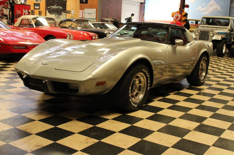 Up for sale is a 1979 Chevrolet Corvette dressed in Silver paint with Red interior. This is a matching number L48- 350 V8 car with automatic transmission, A/C, power door locks, power steering, power brakes, tilt telescopic steering column, factory glass roofs, AM-FM 8 track, leather interior and aluminum wheels. Extremely nice original Corvette with just 24k miles. Stunning color combo, the red interior really pops. This Car runs and drives great and is ready to enjoy. For a better look at this beautiful car please view the video below. For many more photos please see the information in the last photo of this ad. *WE DO OFFER FINANCING* For more information please call Billy King at 334-791-2197.
