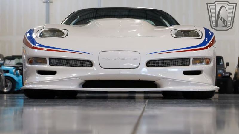 Gateway Classic Cars of San Antonio/Austin is excited to present this 2002 Chevrolet Corvette Z06 GTR, 1 of a claimed 25 C5 models modified by Specter Werkes/Sports of Troy, Michigan. This GTR was originally built with a Katech-developed C5-R 427CID V8 and later underwent a complete engine rebuild by Katech in June 2020. The engine features Jesel rocker arms, Manley exhaust valves, Johnson tie-bar lifters, a DeWitts dual fan kit, and an external oil cooler, paired with a six-speed manual transmission and a limited-slip differential. A custom dual exhaust system with long-tube headers completes the performance package, designed for track-ready power delivery. Finished in white with red and blue racing stripes and a black tail panel, the fixed-roof coupe wears projector-style fixed headlights, a vented cowl-induction hood, a detachable front splitter, enlarged front fender vents, rocker panel extensions, and a rear wing. The widebody kit adds approximately 3 inches up front and 6 inches out back, giving the car an aggressive and purposeful stance. Silver 19-inch Forgeline GS1R wheels are mounted with Michelin Pilot Sport Cup 2 tires measuring 285/30 up front and 325/30 out back. Braking performance is provided by AP Racing Pro 5000 R calipers over Essex two-piece slotted rotors at all four corners, while the chassis incorporates 4-way adjustable Feal coilovers with Swift springs, Pfadt Race Engineering adjustable anti-sway bars, revised control arm bushings, SPL tie-rod ends, and SKF wheel bearings. Inside, the cabin features high-back bucket seats with Z06 and GTR embroidery trimmed in black leather, dual-zone automatic climate control, cruise control, a head-up display, and a Bose sound system with an in-dash CD player. The leather-wrapped steering wheel fronts a 200-mph speedometer, a tachometer with a 6,500-rpm redline, and gauges for coolant temperature, oil pressure, voltage, and fuel level. This 2002 Chevrolet Corvette Z06 GTR is a fully built track-capable car that combines rare factory-approved performance enhancements with extensive Specter Werkes upgrades. Offered on dealer consignment with service records, a clean Carfax report, and a clean Arizona title, it represents a rare and highly collectible example of American performance engineering.