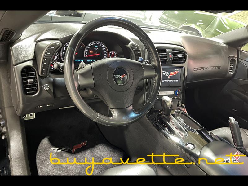 Other additions to this car include Z06 style front bumper/rear bumper/quarter panels/fenders, Z06 fender badges, Black ZR1 style side skirts, aftermarket hood, custom rear diffuser, Z06 style front splitter, mesh grille for the front splitter/front bumper vent/hood vent/fender vents/quarter panel vents, aftermarket CHMSL, polished exhaust filler panel with C6 logo, polished exterior door handle covers, center console armrest with C6 logo embroidery, polished door sill plates with C6 logo, cargo shade with C6 logo embroidery, clear acrylic trunk divider, window tint, and aftermarket shift boot/shift knob/parking brake boot/parking brake/visors with Red stitching. Call us today to bring home this custom C6 Coupe!