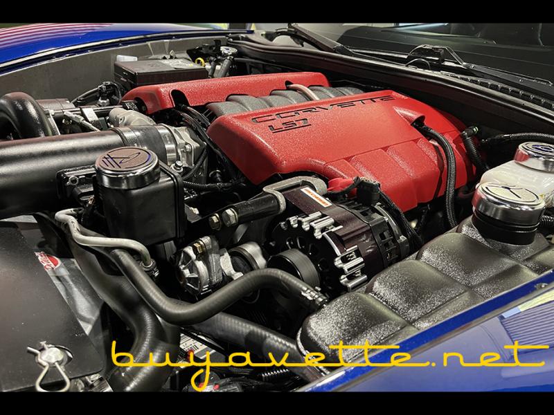 SEE FREE CARFAX AND MORE PHOTOS OF THIS VETTE AND MANY OTHERS FOR SALE AT WWW.BUYAVETTE.NET! OUR VEHICLES RECEIVE A DETAILED INSPECTION, AND MOST COME WITH A LIMITED WARRANTY AT NO EXTRA COST. LeMans Blue exterior, Ebony/Gray interior. 836hp heads/cam/supercharged LS7 engine, 6 speed manual transmission, posi rear-end. Features include the $2,900 2LZ Preferred Equipment Group (memory package, tilt-n-tele, dual heated seats with airbags and power driver's side, auto-dimming mirrors, universal garage door transmitter), Heads Up Display, LeMans Blue tintcoat upcharge, dry-sump oil system, fog lamps, HID headlights, keyless entry and start, power windows, power locks, power steering, power brakes, power mirrors, cruise control, ABS, traction control, Active Handling. Coming with a clean Carfax and LOADED with options, this 2006 Corvette Z06 shows just 31,510 miles, and features a TON of aftermarket performance parts installed by local tuner Vengeance Racing, as well as a host of added appearance accessories. This car's paint is in good condition, with a good shine. A set of black Forgestar F14 wheels has been added, with front size 295/35/18 Continental Extreme Contact Sport 02 tires showing an average of 8/32nds (80%) tread depth remaining, and rear Mickey Thompson ET Street S/S size 345/35/19 tires showing an average of 2/32nds (33%) tread depth remaining. The interior of this 2006 Corvette Z06 shows vg factory leather seats, steering wheel, and door panels. Underhood modifications to this car include a Vengeance Racing custom grind performance camshaft with Vengeance Racing hardened pushrods and Vengeance Racing .660" lift dual valve spring kit, A&A YSi trim 8 rib supercharger kit, Brodix BR7 LS7 cylinder heads (2.200" titanium intake valves, 1.610" Inconnell exhaust valves), IWIS seamless roller timing chain, CHE high performance trunion kit, ARP camshaft bolts and head stud kit, Kooks 2" stainless steel long tube headers w/catted x-pipe, Corsa Black axle-back exhaust, DSX Tuning auxiliary fuel pump kit, Injector Dynamics ID1050xds fuel injectors, Vengeance Racing E85 fuel fuel sensor kit, DeWitt's aluminum radiator and brushless radiator cooling fan kit, 160 degree LS2 thermostat, Mighty Mouse Solutions "Wild" oil catch can system, Monster S-Series triple disc clutch, Moroso spark plug wires, Vengeance Racing spark plug wire sheaths, Blue/polished caps for the dry sump/coolant/washer fluid/power steering reservoir/clutch master cylinder/brake master cylinder, speed bleeder for the clutch, black anodized 240 amp racing alternator, and custom dyno tuning. Other exterior modifications include aftermarket taillights and side markers, Trackspec Motorsports hood vents for stock hood, black fender emblems with additional emblem for the rear bumper, blue "BLUE BAYOU" windshield banner, window tint, blue LG Motorsports front and rear tow hooks, black ZR1 style front splitter/side skirts/oversized rear spoiler, "LS PERFORMANCE" rear window sticker, American flag rear window sticker, blue "Jake" rear window stickers, "11" stickers for the windshield and rear window, "CORVETTE RACING" side window stickers, black "CORVETTE" stickers for the headlights, black vinyl "CORVETTE" sticker for the gas door, black vinyl "VENGEANCE RACING" rocker panel stickers, body color exterior door handles, copper valve stem caps, C6 logo sticker for the top of the rear bumper, "CORVETTE" hood underside sticker, C6 logo hood underside sticker, American flag shark hood underside stickers, American flag C6 logo hood underside stickers, and blue "Jake" logo hood underside stickers. Car has been lowered as well, and G Force Performance Outlaw Series halfshafts have been added, along with SKF Racing 33 spline brake hub assemblies. Interior additions to this car include a Pioneer DMH-W4660NEX Apple CarPlay/Android Auto/HD/BT/USB/MP3 stereo, JL subwoofer (mounted on top of the rear storage bin), LeMans Blue center console/instrument cluster trim, modified stock shifter, Black console lid with "Z06" embroidery, red stitching for the parking brake handle, fire extinguisher, behind seat storage bags, and blue insert for the engine start/stop button. These modifications have roughly 6,000 miles on them, which are documented by Carfax records and the dates on the included invoices from Vengeance Racing, which show roughly $40,000 worth of performance upgrades. Also included is a dyno sheet, showing that the car made 727rwhp and 609rwtq, or 836hp and 700 lbs-ft torque at the flywheel, when calculated with a 15% drivetrain loss. Call us today to bring home this low mile modded C6 Z06! 31K Miles. FREE 2 YEAR/50K ADDITIONAL MILE LIMITED WARRANTY, GOOD AT ANY REPAIR FACILITY NATIONWIDE!! Our Price: $67,999 or 20% down with payments as low as $967/month W.A.C.