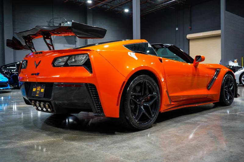 FREE NATIONWIDE ENCLOSED DELIVERY!!! ON SALE NOW! 7SP MANUAL ZTK WITH ONLY 374 MILES! HUGE MSRP! SUPER RARE SEBRING ORANGE DESIGN PKG ZR1 3ZR ZTK! 1 YEAR ONLY CAR! THESE 19 ZR1 MANUAL'S CONTINUE TO INCREASE IN VALUE! COLLECTOR GRADE! SUPERCHARGED 755HP 715TQ! R3 MOTORCARS IS PROUD TO PRESENT THIS UNBELIEVABLE 2019 CHEVROLET CORVETTE ZR1 3ZR COUPE WITH ONLY 374 MILES! THIS VETTE COMES WITH A PERFECT CERTIFIED 1 OWNER CARFAX AND AUTOCHECK HISTORY REPORT! THE EXTREMELY RARE SEBRING ORANGE EXTERIOR AND EVEN MORE RARE BLACK/SUEDE NAPPA LEATHER ARE SHOWROOM NEW. GETS NO RICHER THAN THIS GORGEOUS COLOR COMBO. THIS ZR1 COMES WITH OPTIONS INCLUDING THE 3ZR PKG ($10,000), SEBRING ORANGE DESIGN PKG ($6,995), COMPETITION SEATS, CARBON FIBER GROUND EFFECTS PKG WITH ORANGE STRIPING, ORANGE BRAKE CALIPERS, ORANGE SEATBELTS, PERFORMANCE DATA RECORDER, FRONT CURB VIEW CAMERAS, CARBON FLASH ALUMINUM FACTORY WHEELS, HIGH GLOSS CARBON FIBER INTERIOR PKG, COPPER ACCENTS ON DASH AND STEERING WHEEL, SUEDE STEERING WHEEL, ZTK TRACK PKG WITH HIGH WING ($2,995), DUAL ROOF PKG INCLUDING 1 EXPOSED CARBON FIBER ROOF PANEL AND 1 TRANSPARENT ROOF PANEL ($1,995), 8" MYLINK NAVIGATION AND BACK UP CAMERA, DUAL MODE PERFORMANCE EXHAUST, HEATED AND COOLED SEATS, MAGNETIC SELECTIVE RIDE CONTROL, HEADS UP DISPLAY, MEMORY SEATS, KEYLESS GO WITH PUSH BUTTON START, ACTIVE HANDLING, BOSE SOUND, PWR WINDOWS AND LOCKS, OWNERS MANUAL, 7SP MANUAL TRANSMISSION, BOOKS, BOTH KEYS, ORIGINAL WINDOW STICKER, AND MORE! BE DIFFERENT WITH THIS UNBELIEVABLE SEBRING ORANGE ZR1! SUPER COMPETITVE FINANCING RATES AVAILABLE WITH APPROVED CREDIT. EXTENDED WARRANTIED AVAILABLE TOO! PRICED RIGHT AND READY TO GO!! PLEASE CALL ME WITH ANY QUESTIONS. THANKS.
