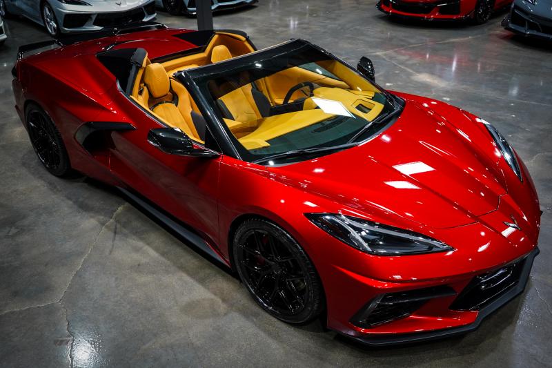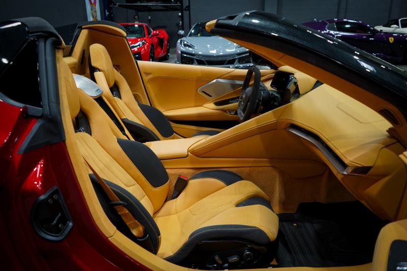 FREE NATIONWIDE ENCLOSED DELIVERY!!! ON SALE NOW! SAVE THOUSANDS OFF MSRP! 2023 MID-ENGINE C8 CORVETTE 3LT HARDTOP CONVERTIBLE! R3 MOTORCARS IS PROUD TO PRESENT THIS UNBELIEVABLE 2023 CHEVROLET CORVETTE 3LT CONVERTIBLE WITH ONLY 17K MILES! THE SUPER RARE RED MIST METALLIC EXTERIOR AND GORGEOUS NATURAL NAPPA LEATHER INTERIOR ARE SHOWROOM NEW. GETS NO CLEANER THAN THIS GORGEOUS COLOR COMBO. THIS STINGRAY COMES WITH A PERFECT CERTIFIED CARFAX AND AUTOCHECK HISTORY REPORTS! THIS C8 COMES WITH OPTIONS INCLUDING THE 3LT PKG ($11,950), FRONT LIFT ($2,595), EXPOSED CARBON FIBER GROUND EFFECTS ($2,500), GLOSS BLACK TRIDENT WHEELS ($1,995), Z51 MAGNETIC RIDE CONTROL ($1,895), CARBON FLASH PAINTED NACELLES AND ROOF ($1,295), PERFORMANCE DUAL MODE EXHAUST ($1,195), RED MIST METALLIC PAINT ($995), EDGE RED CALIPERS ($695), PERFORMANCE DATA RECORDER, FRONT CURB VIEW CAMERAS, NAVIGATION, DUAL MODE PERFORMANCE EXHAUST, HEATED AND COOLED SEATS, HEADS UP DISPLAY, MEMORY SEATS, KEYLESS GO WITH PUSH BUTTON START, BOSE SOUND, PWR WINDOWS AND LOCKS, OWNERS MANUAL, 8SP DUAL CLUTCH AUTOMATIC TRANSMISSION WITH PADDLE SHIFTERS, BOOKS, BOTH KEYS, AND MORE! SUPER COMPETITVE FINANCING RATES AVAILABLE WITH APPROVED CREDIT. EXTENDED WARRANTIES AVAILABLE TOO! PRICED RIGHT AND READY TO GO!! PLEASE CALL ME WITH ANY QUESTIONS. THANKS.
