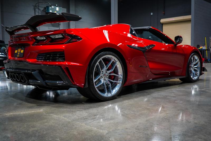 FREE NATIONWIDE ENCLOSED DELIVERY! ON SALE NOW! Z07 AND VISIBLE CARBON FIBER AERO! HUGE $170K MSRP PLUS $10,000 IN FULL BODY PPF PAINT PROTECTION FILM! R3 MOTORCARS IS PROUD TO PRESENT THIS UNBELIEVABLE 2025 CHEVROLET CORVETTE Z06 3LZ CONVERTIBLE WITH ONLY 704 MILES! THIS VETTE IS BRAND NEW IN EVERYWAY! THE INSANE RED MIST METALLIC EXTERIOR AND BLACK NAPPA LEATHER INTERIOR ARE SHOWROOM NEW. THIS C8 Z06 COMES WITH OPTIONS INCLUDING THE 3LZ PKG ($13,550), VISBLE CARBON FIBER AERO PKG ($10,495), Z06 Z07 ULTIMATE PERFORMANCE PKG WITH BREMBO CERAMIC BRAKES ($8,995), FRONT LIFT ($2,595), POLISHED FORGED SPIDER DESIGN WHEELS ($1,995), CORVETTE MUSEUM DELIVERY ($1,495), ENGINE APPEARANCE PKG WITH CLEAR ENGINE WINDOW ($1,095), RED MIST METALLIC PAINT ($995), SCRAPE ARMOR GRILLE ($895), EDGE RED BRAKE CALIPERS ($695), CARBON FIBER/SUEDE STEERING WHEEL ($695), STEALTH INTERIOR PKG ($595), ENGINE INTAKE IN RED ($495), TORCH RED SEAT BELTS ($495), ADRENALINE RED STITCHING ($495), BLACK EXHAUST TIPS ($395), ALL WEATHER FLOOR LINERS ($250), DARK STEALTH CROSSED FLAGS ($225), WHEEL LOCKS ($120), PERFORMANCE DATA RECORDER, FRONT CURB VIEW CAMERAS, NAVIGATION, DUAL MODE PERFORMANCE EXHAUST, HEATED AND COOLED SEATS, HEADS UP DISPLAY, MEMORY SEATS, KEYLESS GO WITH PUSH BUTTON START, REMOTE START, BOSE SOUND, PWR WINDOWS AND LOCKS, OWNERS MANUAL, 8SP DUAL CLUTCH AUTOMATIC TRANSMISSION WITH PADDLE SHIFTERS, BOOKS, BOTH KEYS, ORIGINAL WINDOW STICKER! SUPER COMPETITVE FINANCING RATES AVAILABLE WITH APPROVED CREDIT. FACTORY WARRANTY UNTIL 60K MILES! EXTENDED WARRANTIES AVAILABLE TOO! PRICED RIGHT AND READY TO GO!! PLEASE CALL ME WITH ANY QUESTIONS. THANKS.